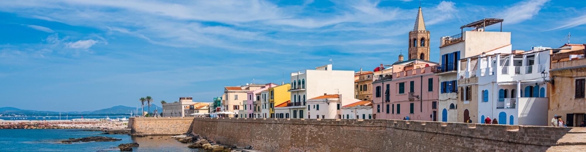 Alghero is one of the most celebrated tourist resorts in Sardinia – a city rich in history and tradition, located on the north-western coast of the island, which is known as the “Coral Riviera” (hence the name of the nearby Riviera del Corallo airport at Fertilia, just 20 minutes’ drive from the city).